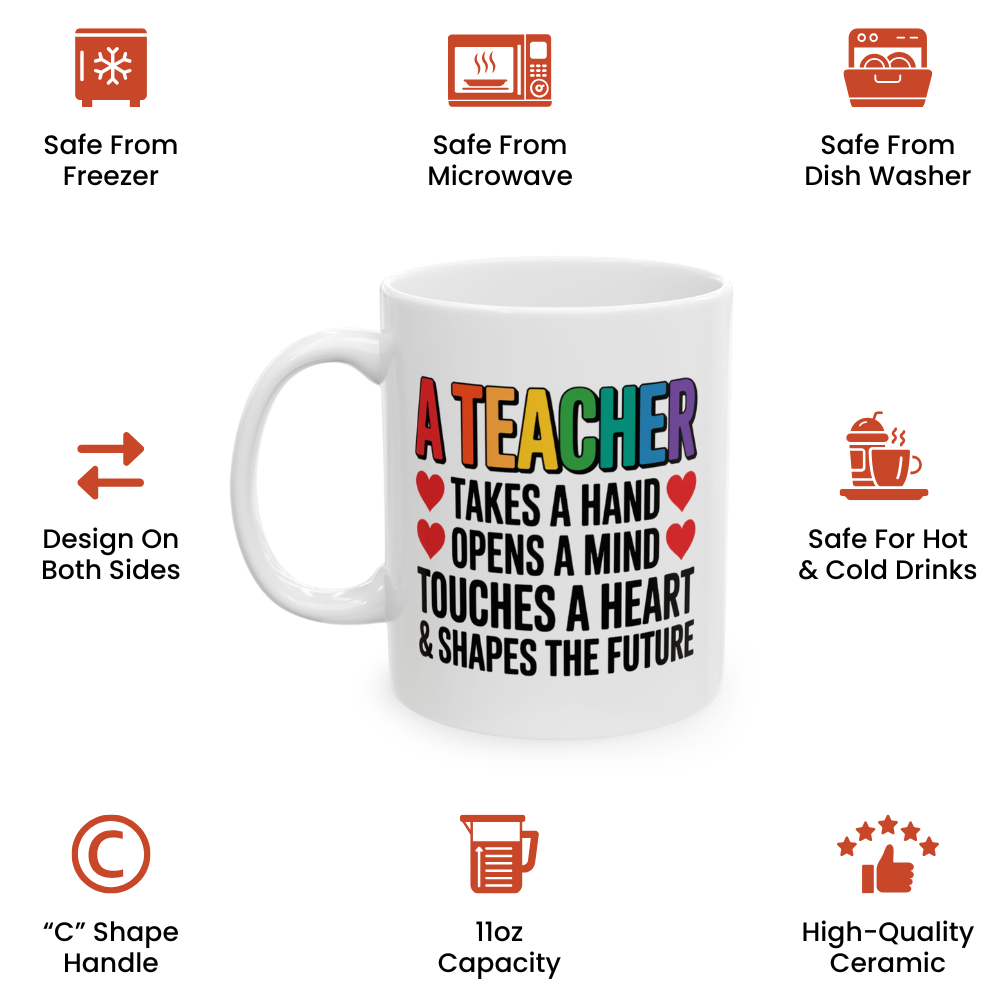 Best Teacher Gift Mug – A Teacher Takes a Hand, Opens a Mind, Touches a Heart Cup