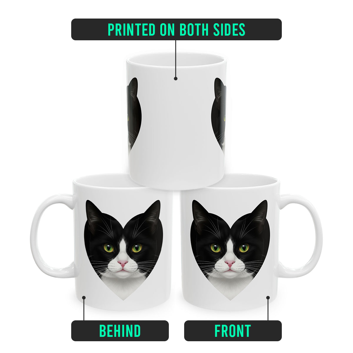 Black and White I Love Tuxedo Cat Mug – Lovely Tuxedo Cat Lover Coffee Cup – Cute Gift for Women, Men, and Cat Owners