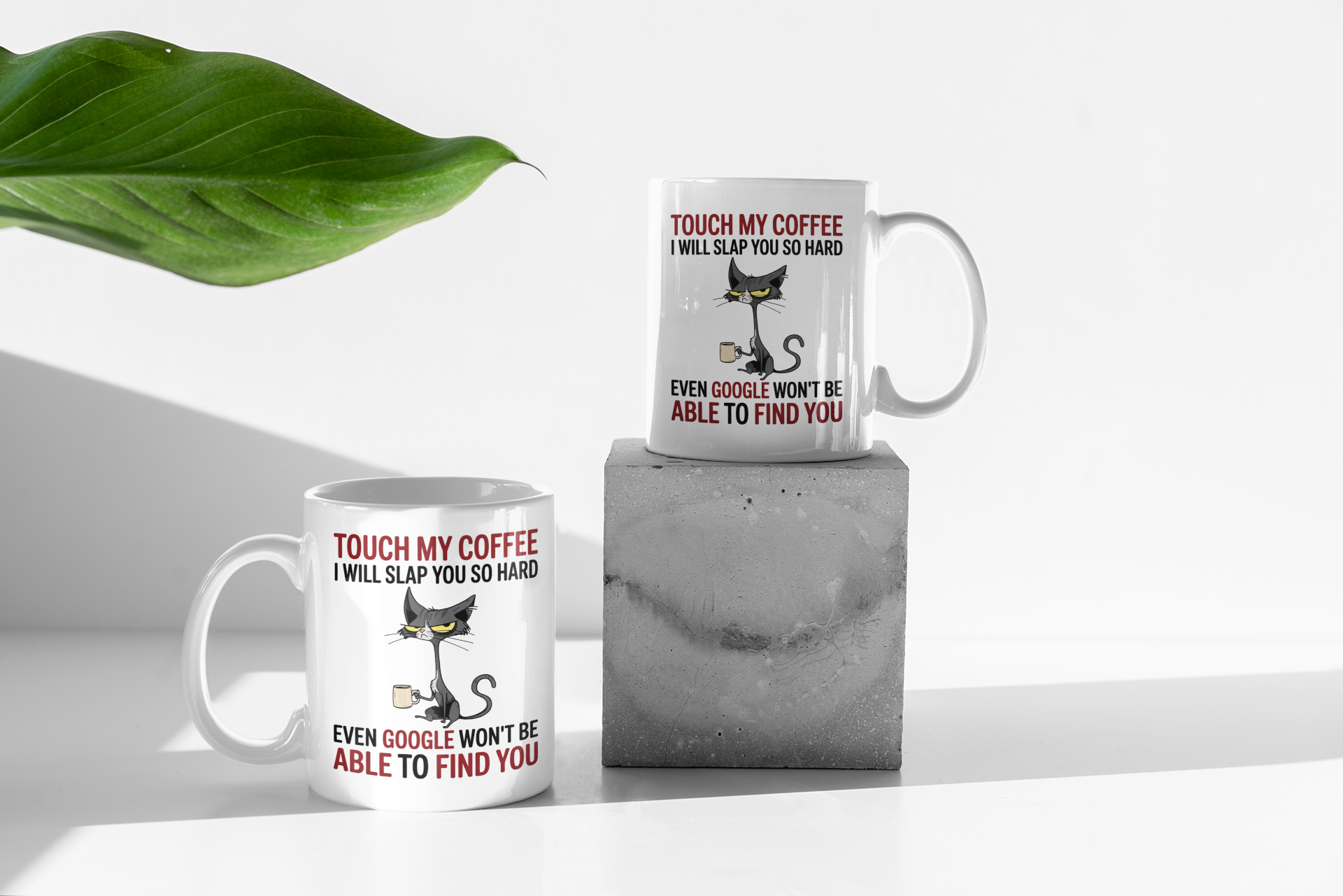 - Features the bold phrase: “Touch My Coffee I'll Slap You So Hard” with a cute black cat design
