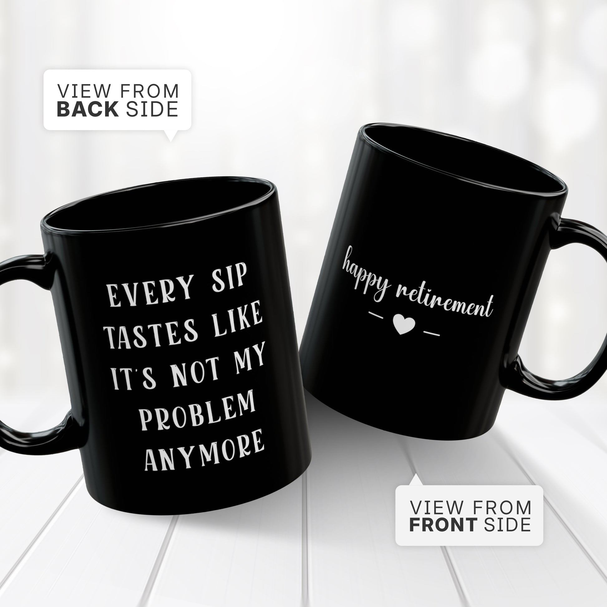 - Perfect Funny Retirement Gift – Make their big day extra special with this "Every Sip Tastes Like It’s Not My Problem Anymore" mug, a top choice for retirement gifts for men and women, bosses, coworkers, and friends.