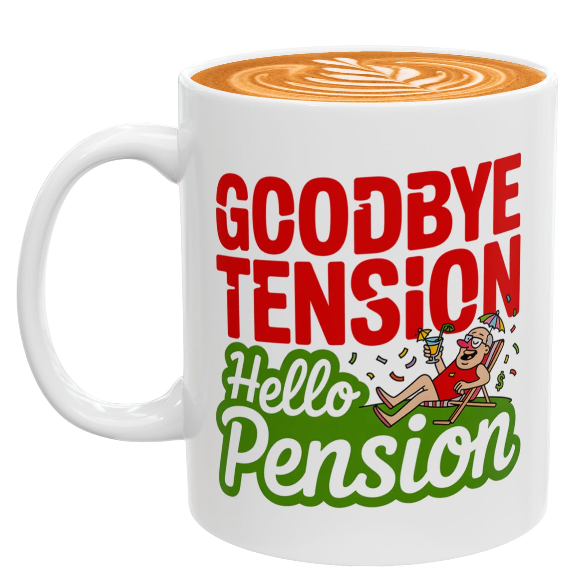 Celebrate retirement in style with the Goodbye Tension Hello Pension Mug — the perfect way to say goodbye to early alarms and hello to well-deserved relaxation. Whether it’s for Dad, Mom, Grandpa, Grandma, your favorite coworker, or a cherished teacher, this funny retirement coffee cup is sure to bring a smile with every sip. Crafted from high-quality, durable ceramic, it’s printed in the USA using advanced sublimation printing for vivid, long-lasting colors and a glossy finish. Safe for the oven, microwave, dishwasher, and freezer, this 11 oz ceramic retirement mug is lead and BPA-free, making it both practical and thoughtful. Give it as a retirement gift for police, army, navy, or any hardworking friend — they’ve earned it!