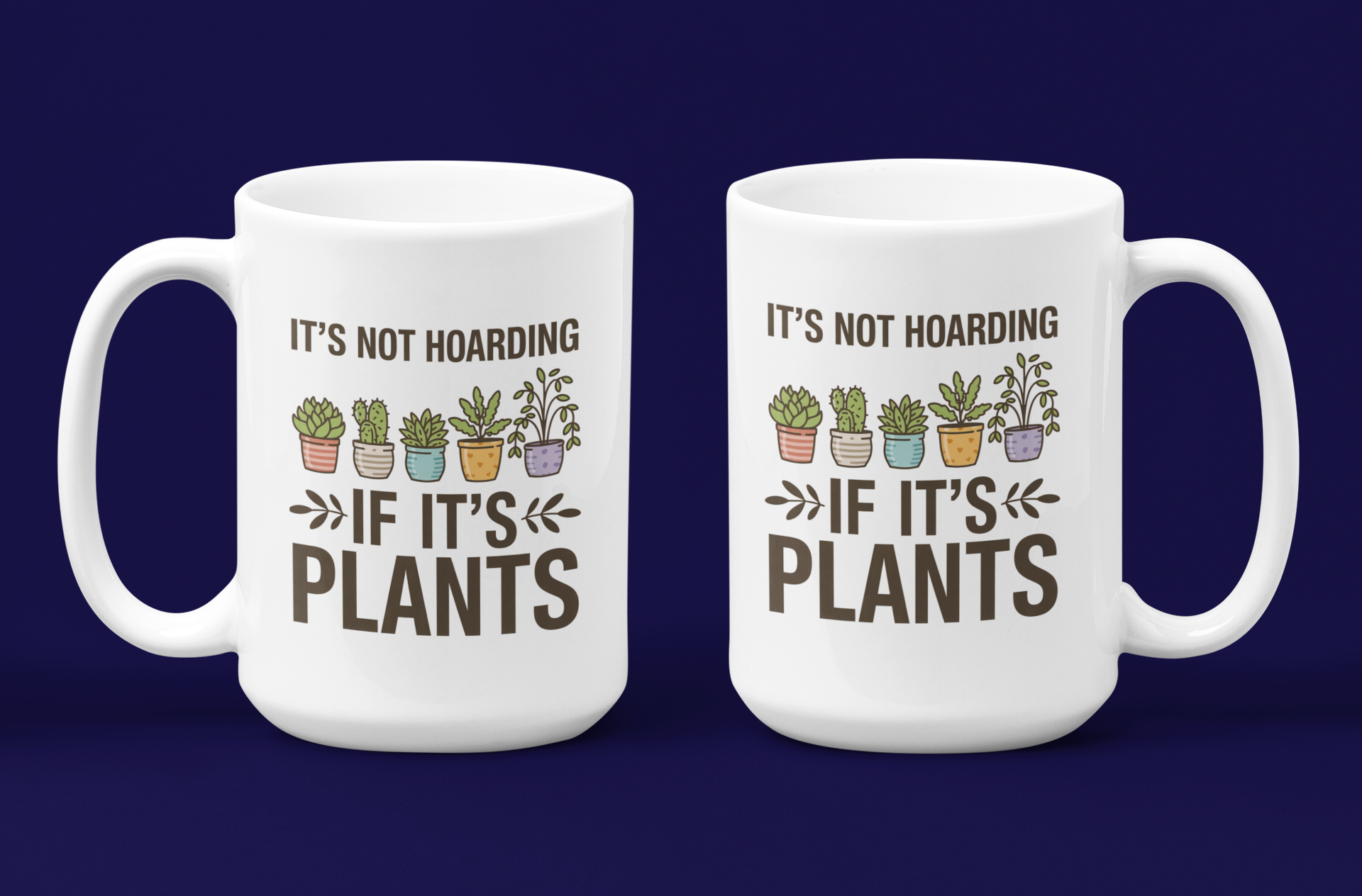 🌿 Funny Plant Mug with Personality – Features the witty phrase “It’s Not Hoarding If It’s Plants”, making it the perfect gardening mug and conversation starter for plant lovers everywhere.