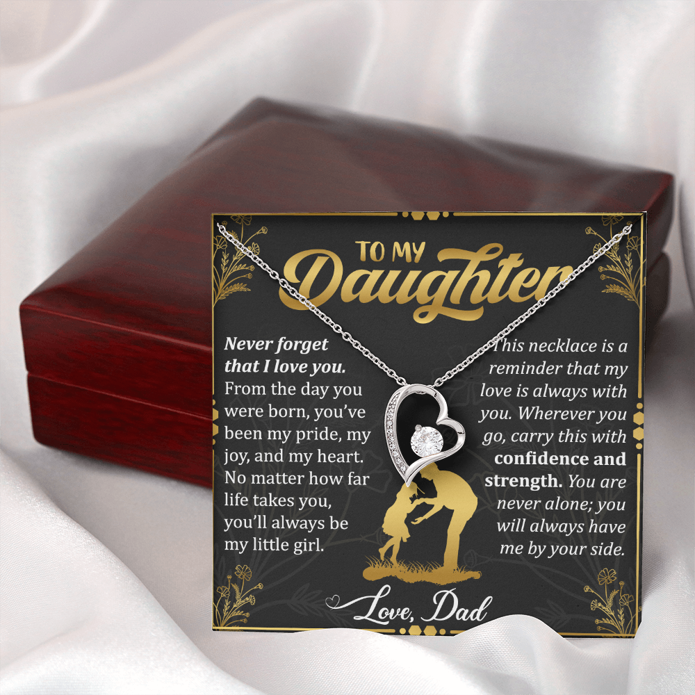 Express your love and affection for your daughter with the “Never Forget That I Love You Necklace for Daughter.” Crafted with a 14k white gold finish and featuring a sparkling 6mm round-cut cubic zirconia stone, this elegant necklace is the perfect way to show your daughter how much she means to you.