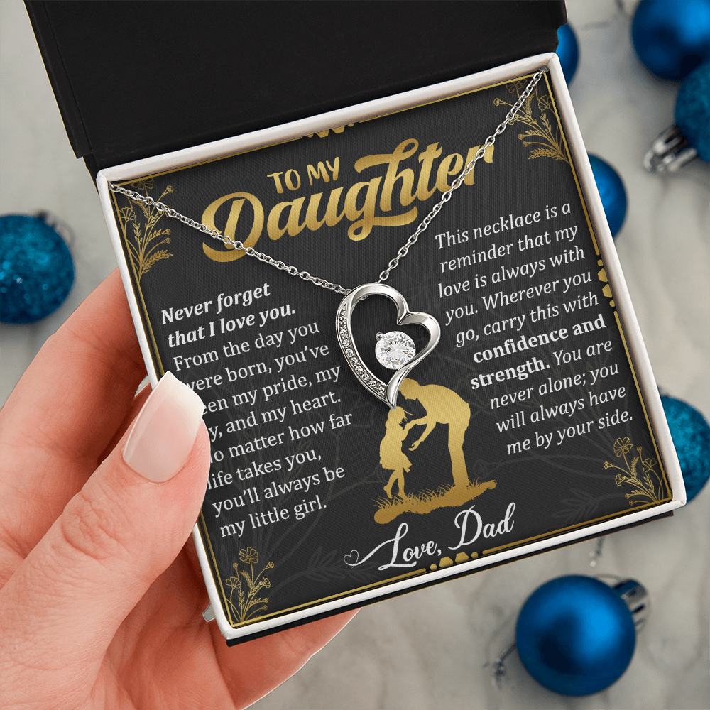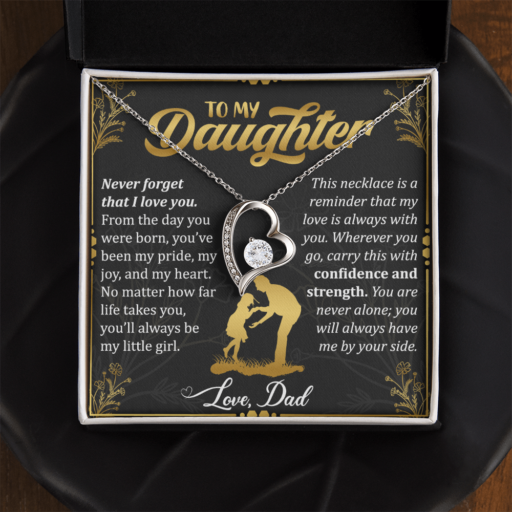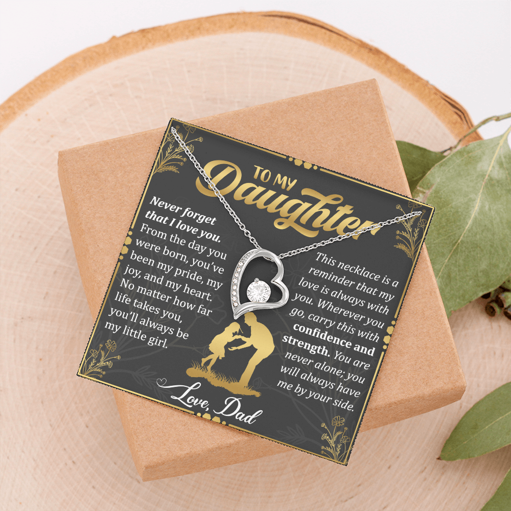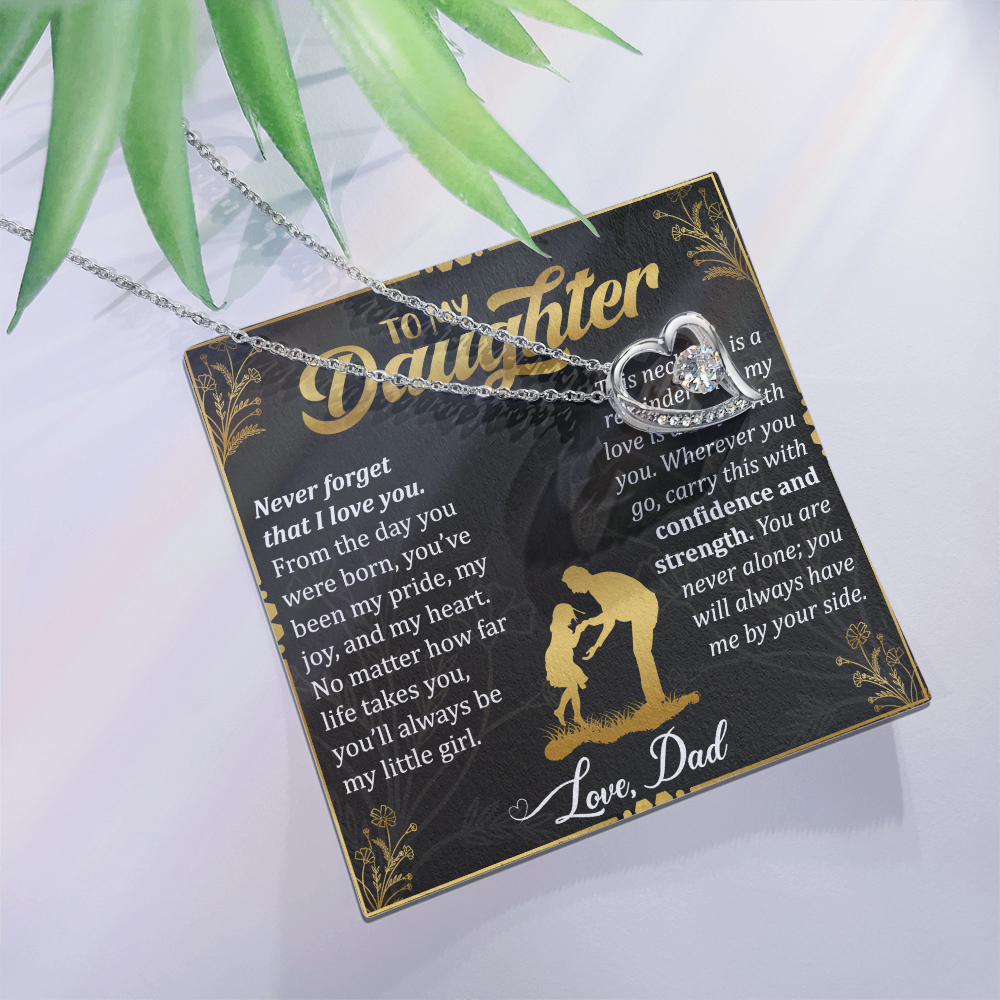 Never Forget I Love You Necklace – 14k White Gold Heart Pendant for Daughter