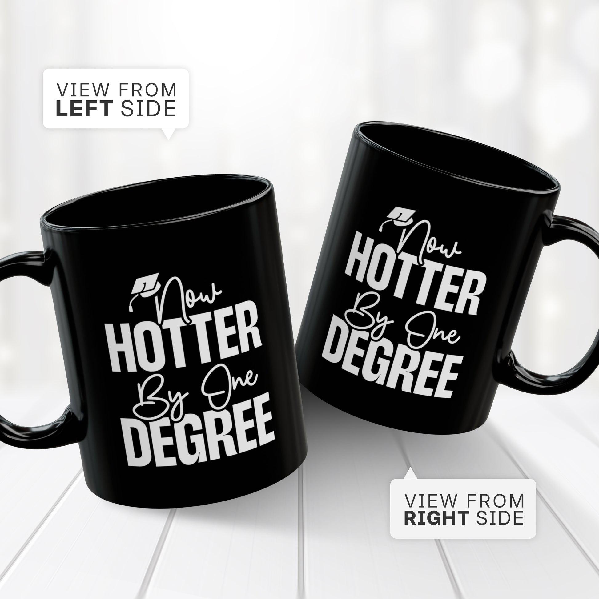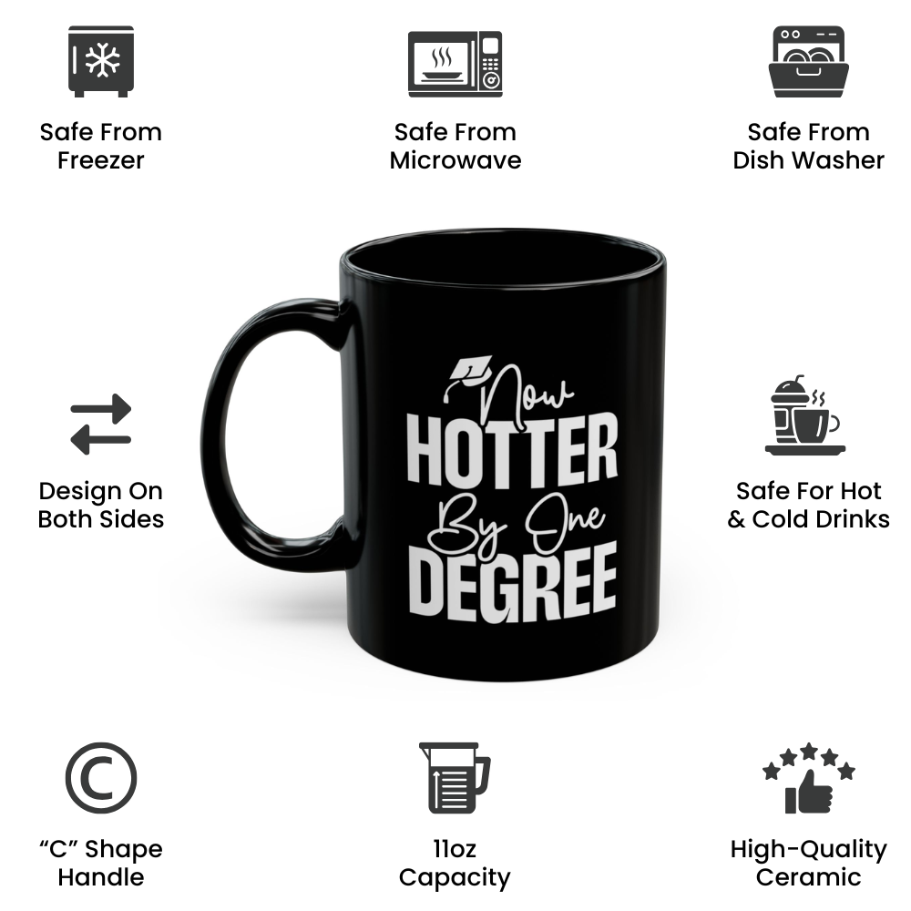 Celebrate the Class of 2025 with the “Now Hotter by One Degree” Graduation Mug! Featuring the clever phrase “Now Hotter by One Degree”, this funny and inspirational coffee cup makes the perfect keepsake for graduates of high school, college, master’s, or PhD programs. It’s a witty way to honor their hard work while giving them a gift they’ll actually use.