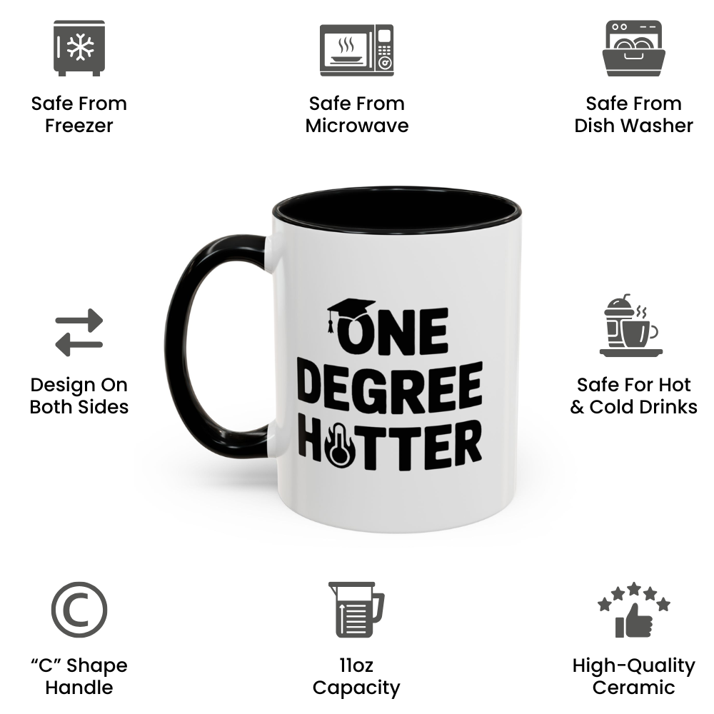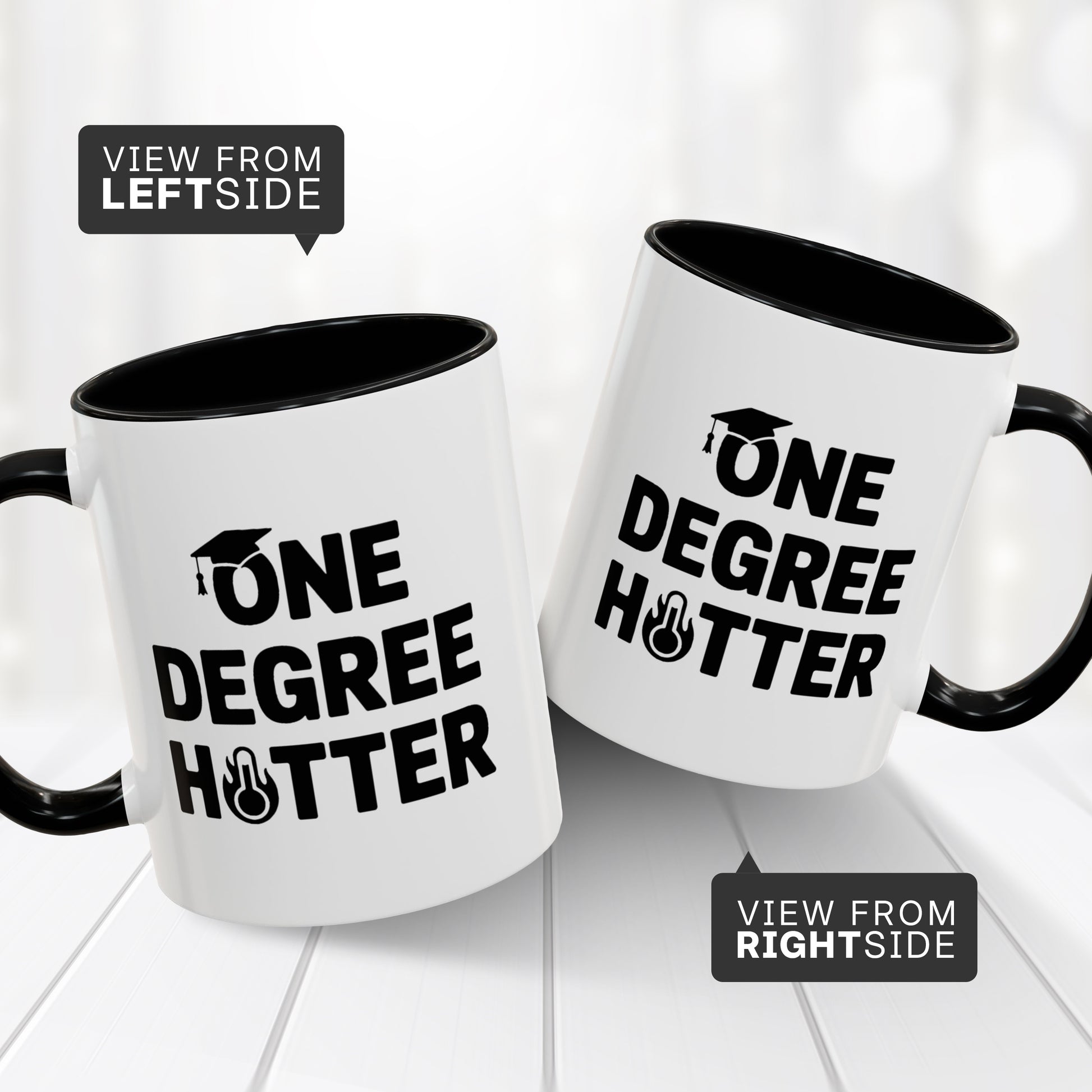 Celebrate graduation with the “One Degree Hotter Graduation Mug 2025” – now with double-sided printing and a stylish black handle and interior for a modern touch. Featuring the witty phrase “One Degree Hotter”, this mug is the perfect funny and inspirational gift for high school, college, master’s, or PhD graduates.
