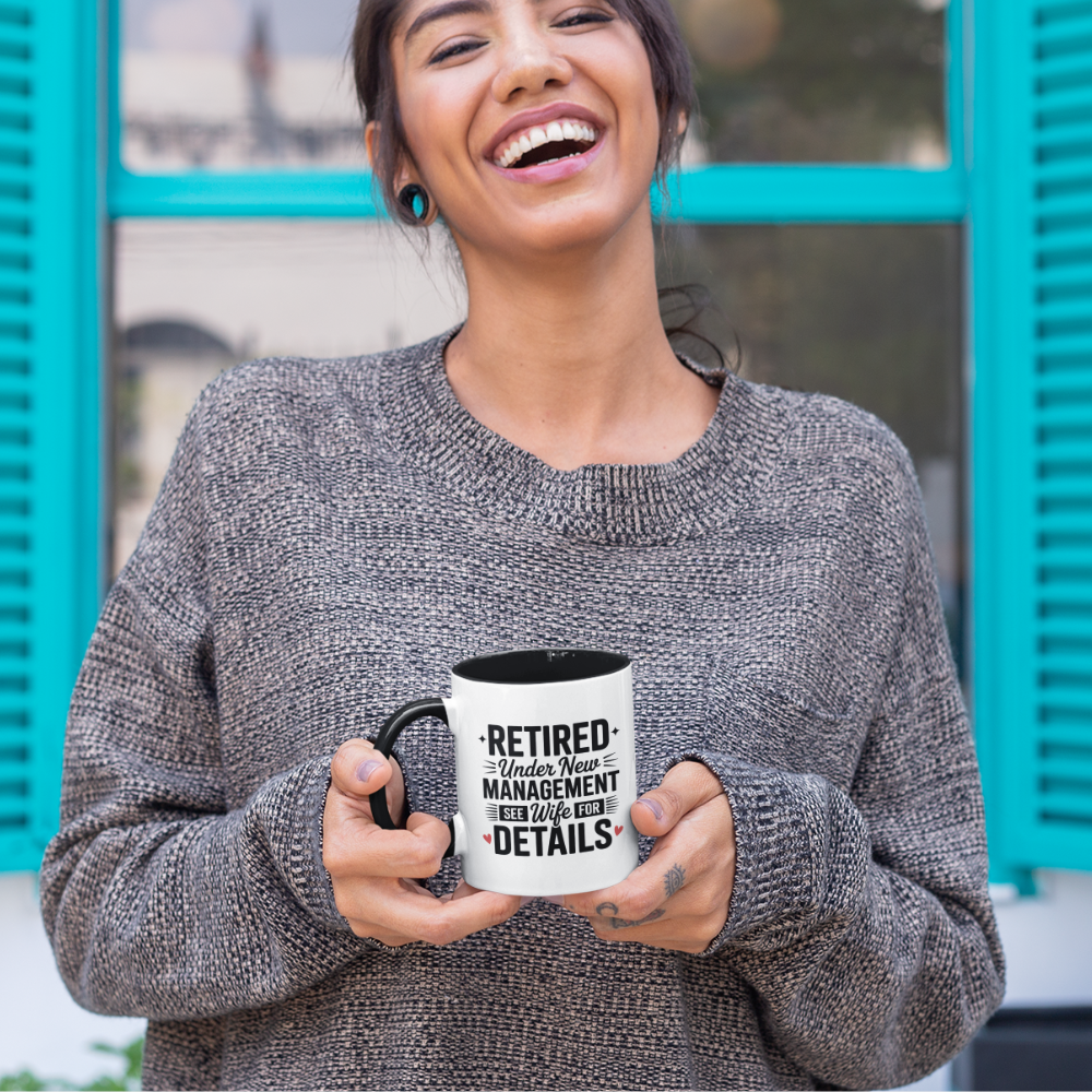Retired Under New Management See Wife for Details - Black Accent Mug (11oz)