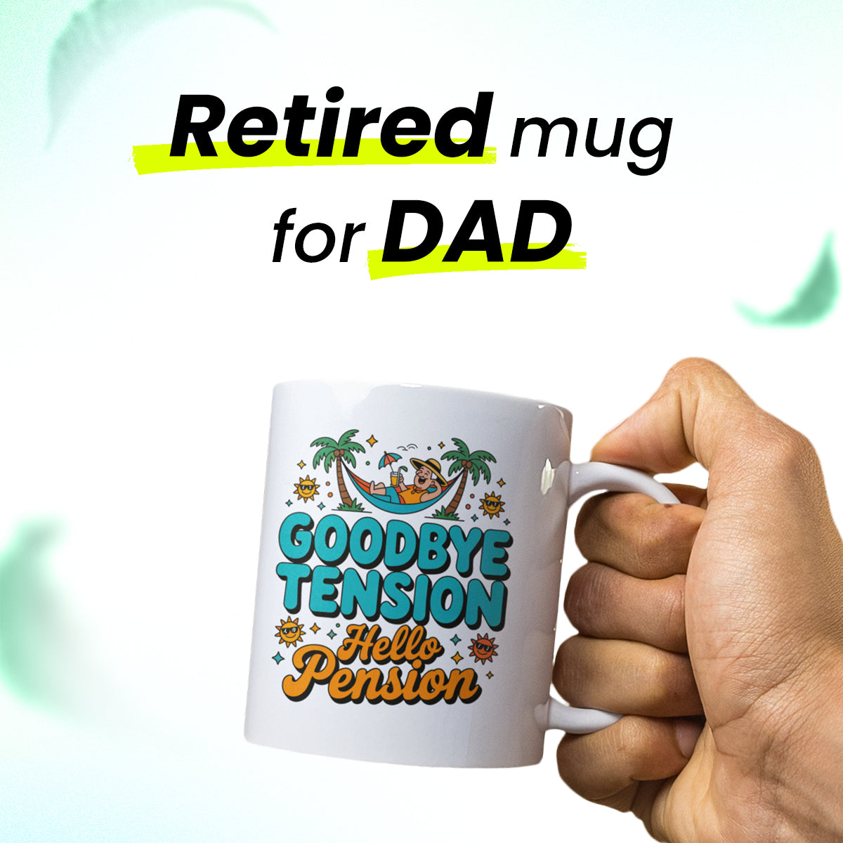 - 🎉 Perfect Retirement Gift for Men & Women – Celebrate their big milestone with this Goodbye Tension Hello Pension coffee mug, a thoughtful and funny retirement gift for Dad, Mom, Grandpa, Grandma, teachers, coworkers, police officers, army, or navy veterans.