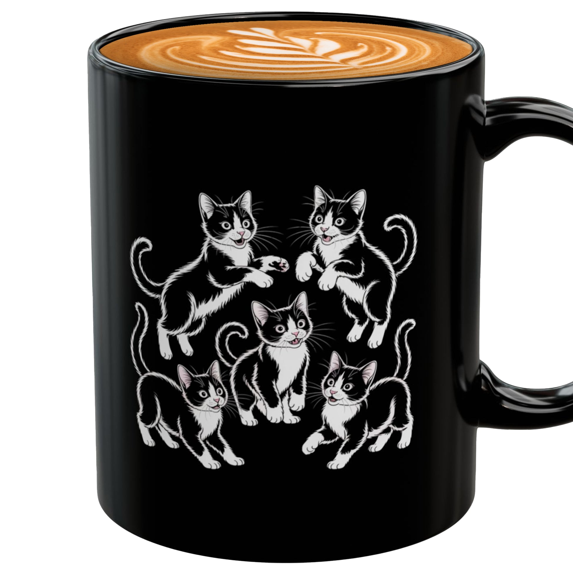 Tuxedo Cat Mug – Black White Tuxedo Cat Playful Postures – Mug for Cat Lover Women, Men, Friends, and Coworkers