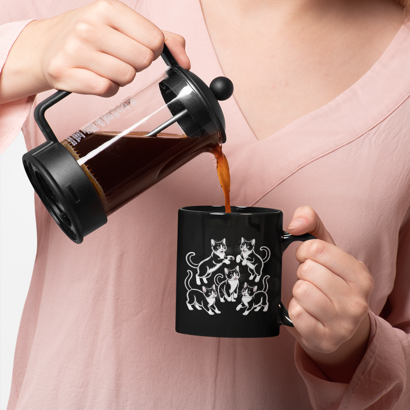 - Funny and Playful Black & White Tuxedo Cat Design – Shows a cute Black White Tuxedo Cat in playful postures, making this a great funny cat mug for women or cat coffee mug for men who enjoy humor and feline style.